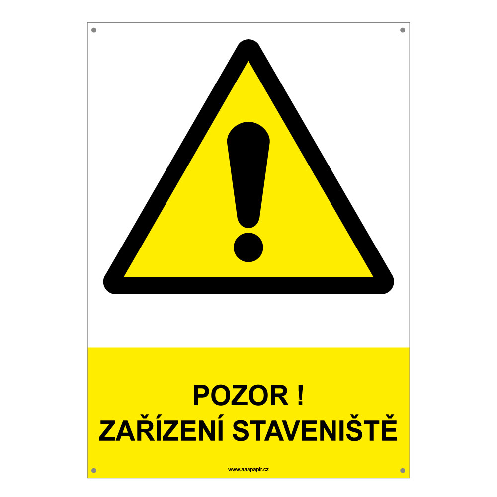 POZOR! ZAŘÍZENÍ STAVENIŠTĚ - bezpečnostní tabulka s dírkami, plast A4, 2 mm
