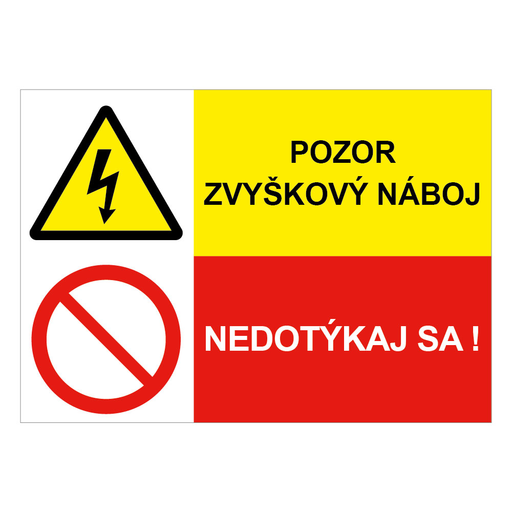 Pozor zvyškový náboj!-Nedotýkaj sa!, kombinácia, samolepka 297x210mm