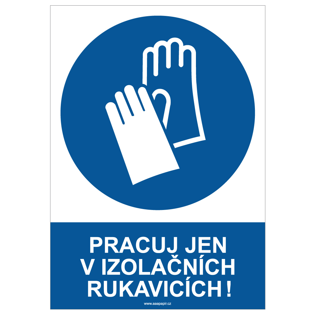 PRACUJ JEN V IZOLAČNÍCH RUKAVICÍCH - bezpečnostní tabulka, plast A4, 0,5 mm