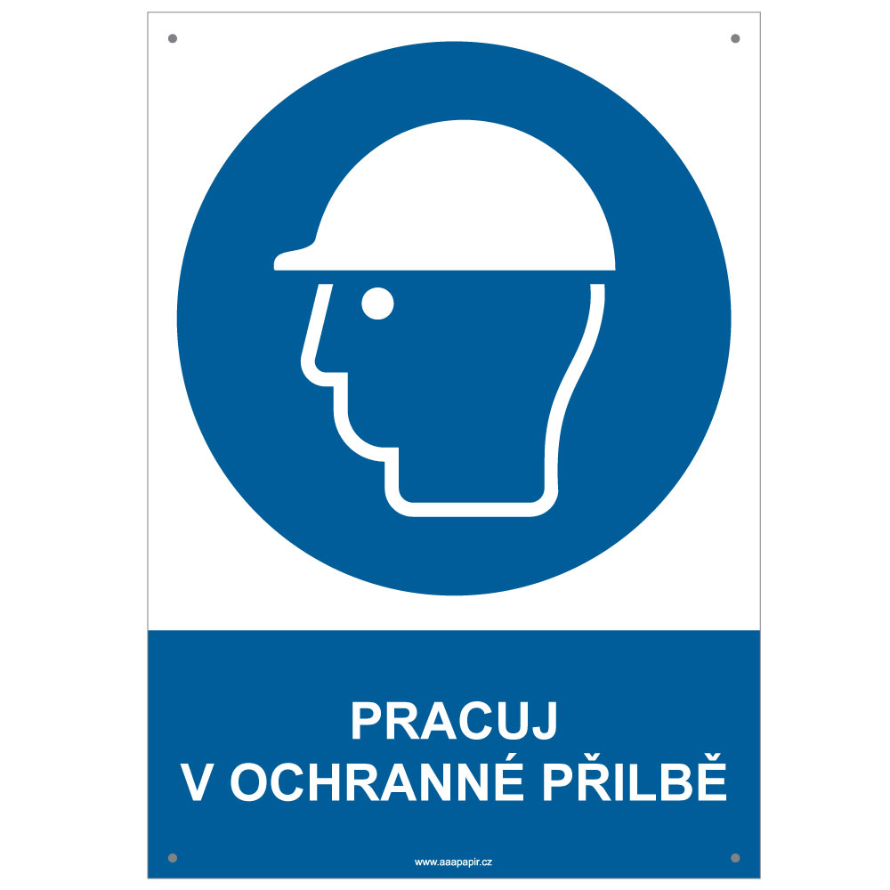 PRACUJ V OCHRANNÉ PŘILBĚ - bezpečnostní tabulka s dírkami, plast A4, 2 mm