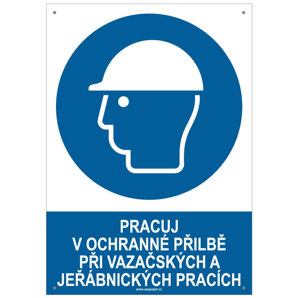 PRACUJ V OCHRANNÉ PŘILBĚ PŘI VAZAČSKÝCH A JEŘABNICKÝCH PRACÍCH - bezpečnostní tabulka, plast A4, 0,5 mm