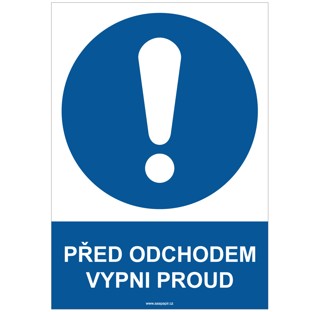 PŘED ODCHODEM VYPNI PROUD - bezpečnostní tabulka, plast A4, 2 mm