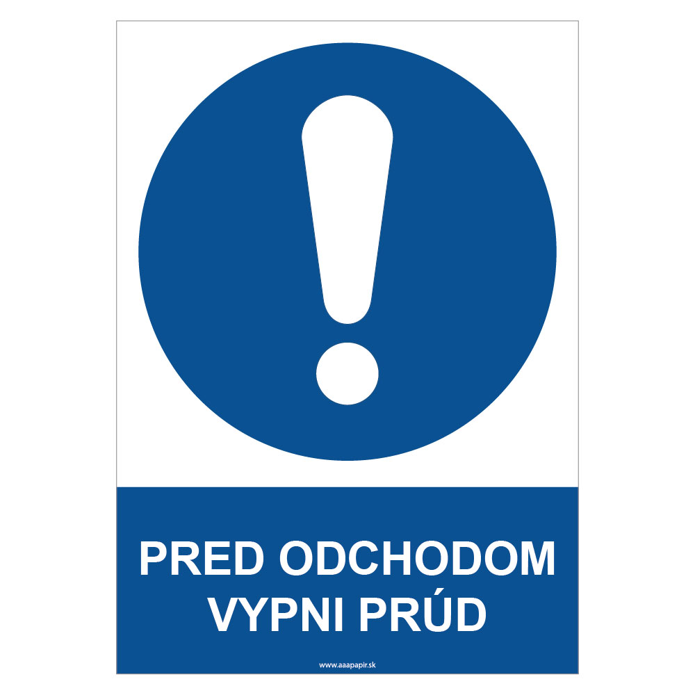 Pred odchodom vypni prúd - bezpečnostná tabuľka, plast 0,5 mm - A4