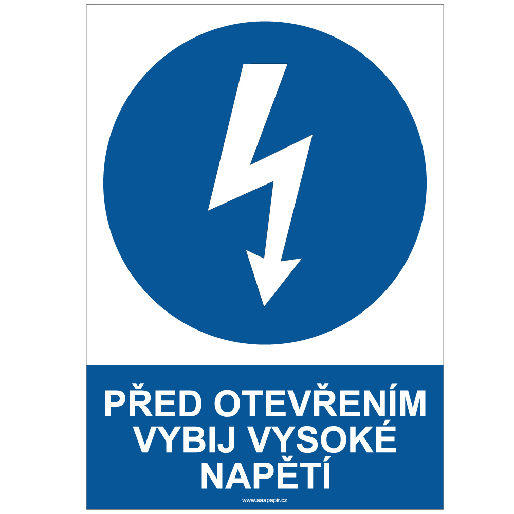 PŘED OTEVŘENÍM VYBIJ VYSOKÉ NAPĚTÍ - bezpečnostní tabulka, plast A4, 0,5 mm