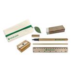 Kancelárska súprava 5 ks v eco puzdre. Vrátane guľôčkového pera (s modrou náplňou), ceruzky (HB, neorezané), 15 cm pravítka, strúhadlá a gumy. Minimálne objednávacie množstvo je 1 ks. Rozmer: 190 x 90 mm Propisky Vám na prianie potlačíme. Pre za