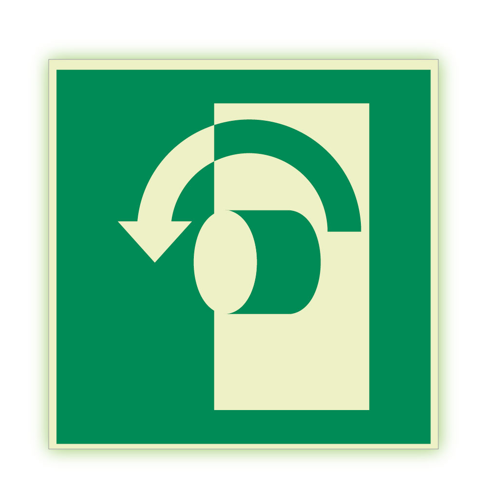 Pro otevření otočit proti směru hodinových ručiček - fotoluminiscenční tabulka, samolepka 200x200 mm