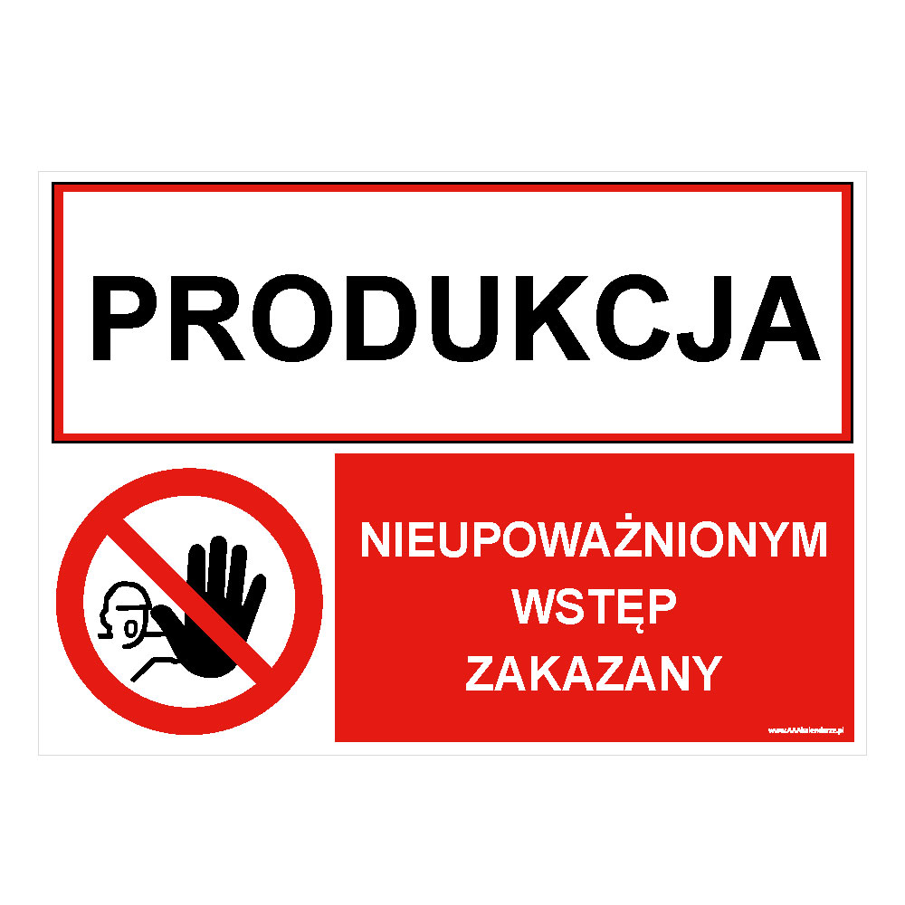 PRODUKCJA - NIEUPOWAŻNIONYM WSTĘP ZAKAZNY, ZNAK ŁĄCZONY, naklejka 297 x 210 mm