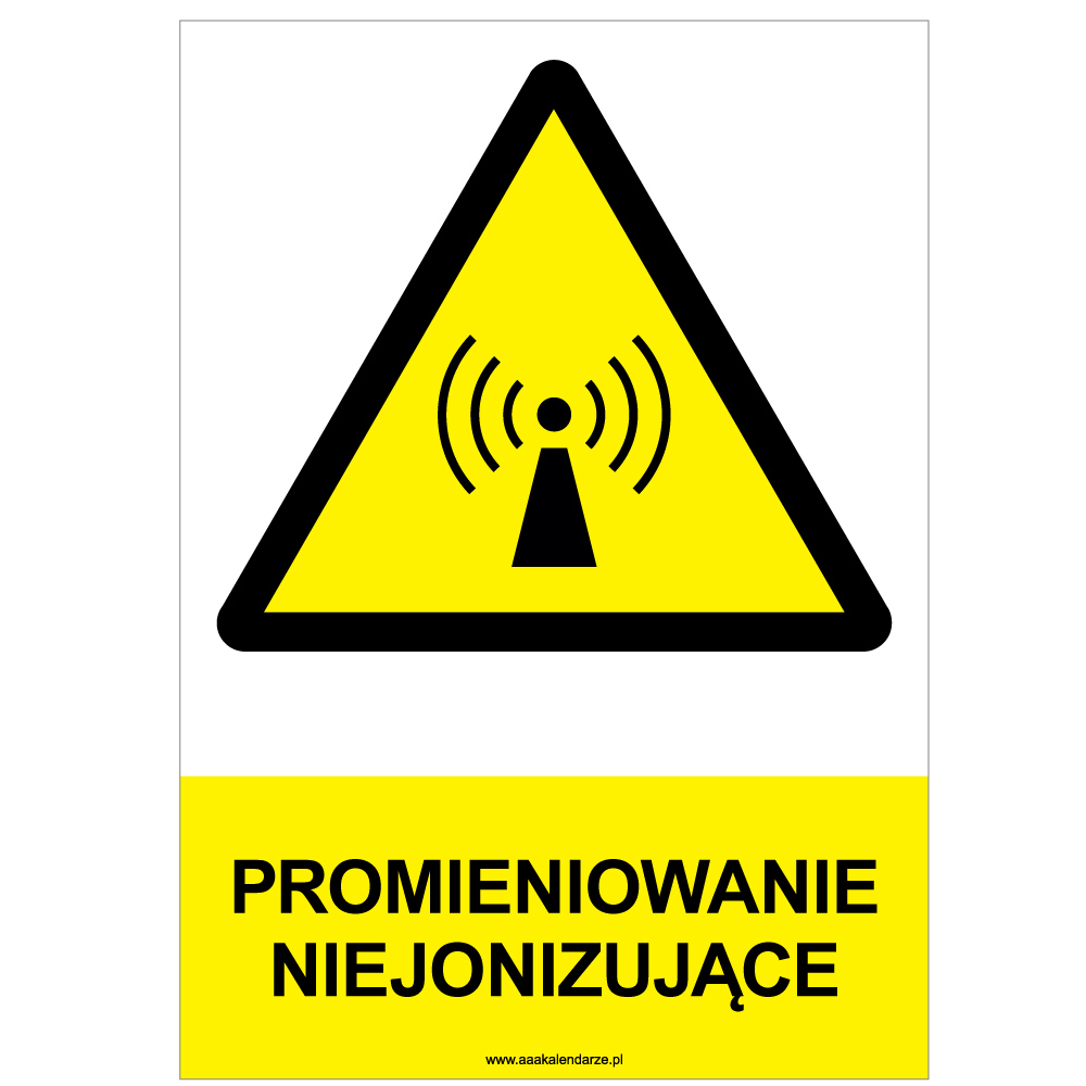 PROMIENIOWANIE NIEJONIZUJĄCE - znak BHP, płyta PVC A4, 2 mm