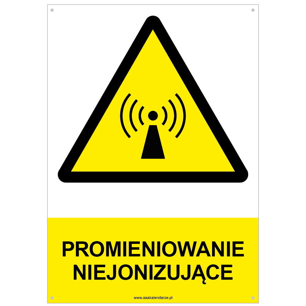 PROMIENIOWANIE NIEJONIZUJĄCE - znak BHP z dziurkami, płyta PVC A4, 2 mm