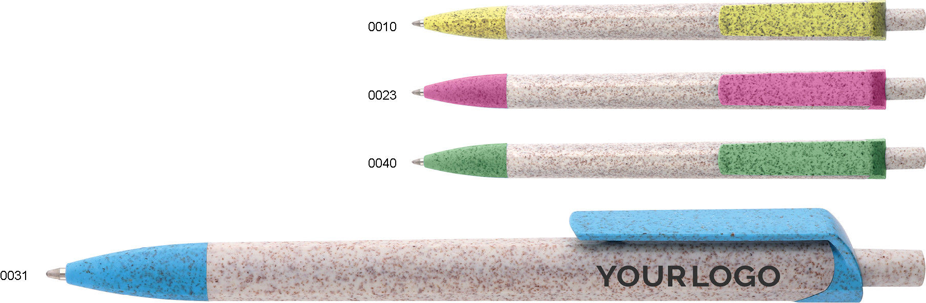 Eco-friendly plastové kuličkové pero v trojhranném provedení z recyklované pšeničné slámy s atraktivními pastelovými doplňky