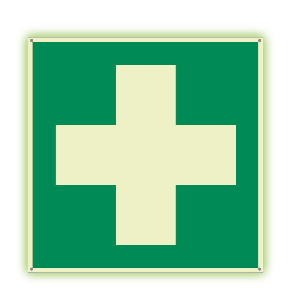 Prvá pomoc - ošetrovňa - označenie lekárničky - fotoluminiscenčná tabuľka, plast 1 mm 200x200 mm