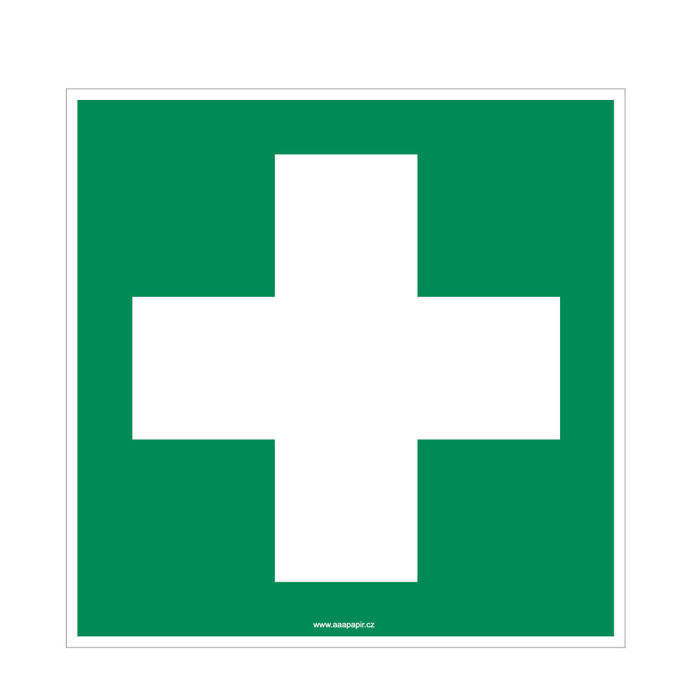 První pomoc - ošetřovna - lékarnička - bezpečnostní tabulka, samolepka 200x200 mm