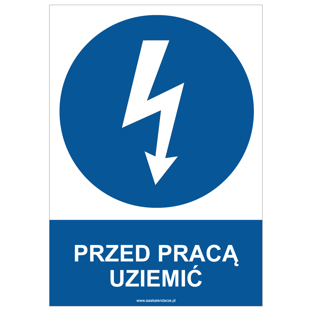 PRZED PRACĄ UZIEMIĆ - znak BHP, płyta PVC A4, 2 mm