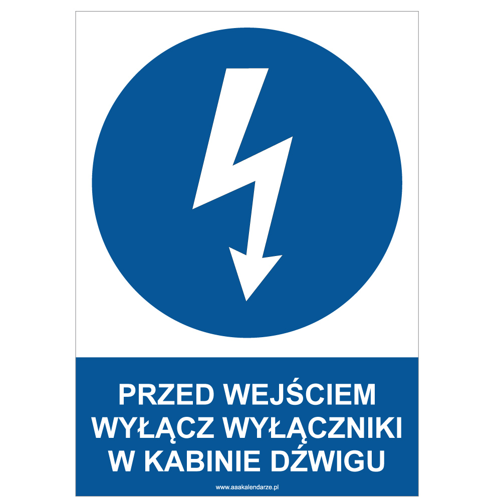 PRZED WEJŚCIEM WYŁĄCZ WYŁĄCZNIKI W KABINIE DŹWIGU - znak BHP, płyta PVC A4, 0,5 mm