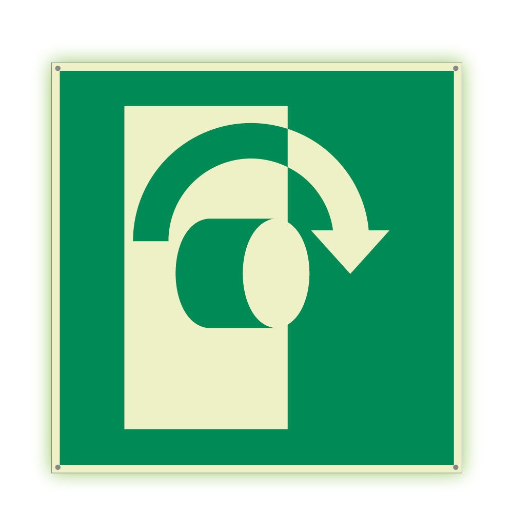 Przekręcić w prawo aby otworzyć - fotoluminescencyjny znak, płyta PVC 1 mm 300x300 mm