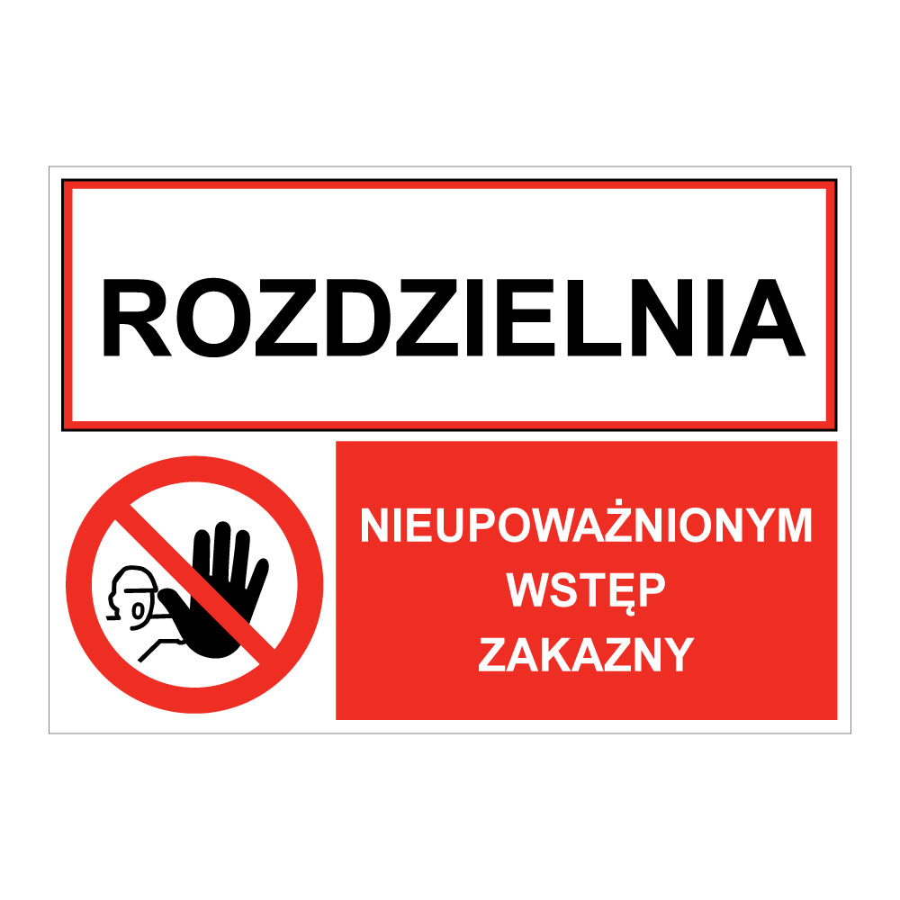 ROZDZIELNIA - NIEUPOWAŻNIONYM WSTĘP ZAKAZNY, ZNAK ŁĄCZONY, naklejka 210x148 mm