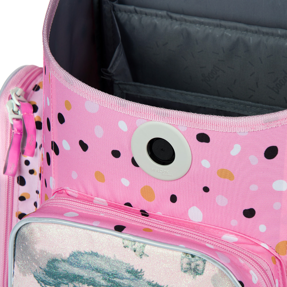 • Vovnútri aktovky je priehľadná kapsa s rozvrhom a vnútorný organizér umožňujúci rovnomerné rozloženie hmotnosti.