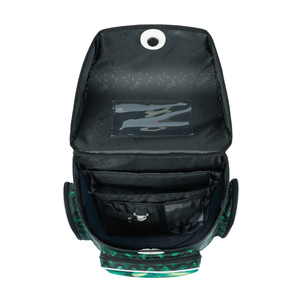 • Vnútri aktovky je priehľadné vrecko na rozvrh a vnútorný organizér umožňujúci rovnomerné rozloženie hmotnosti.