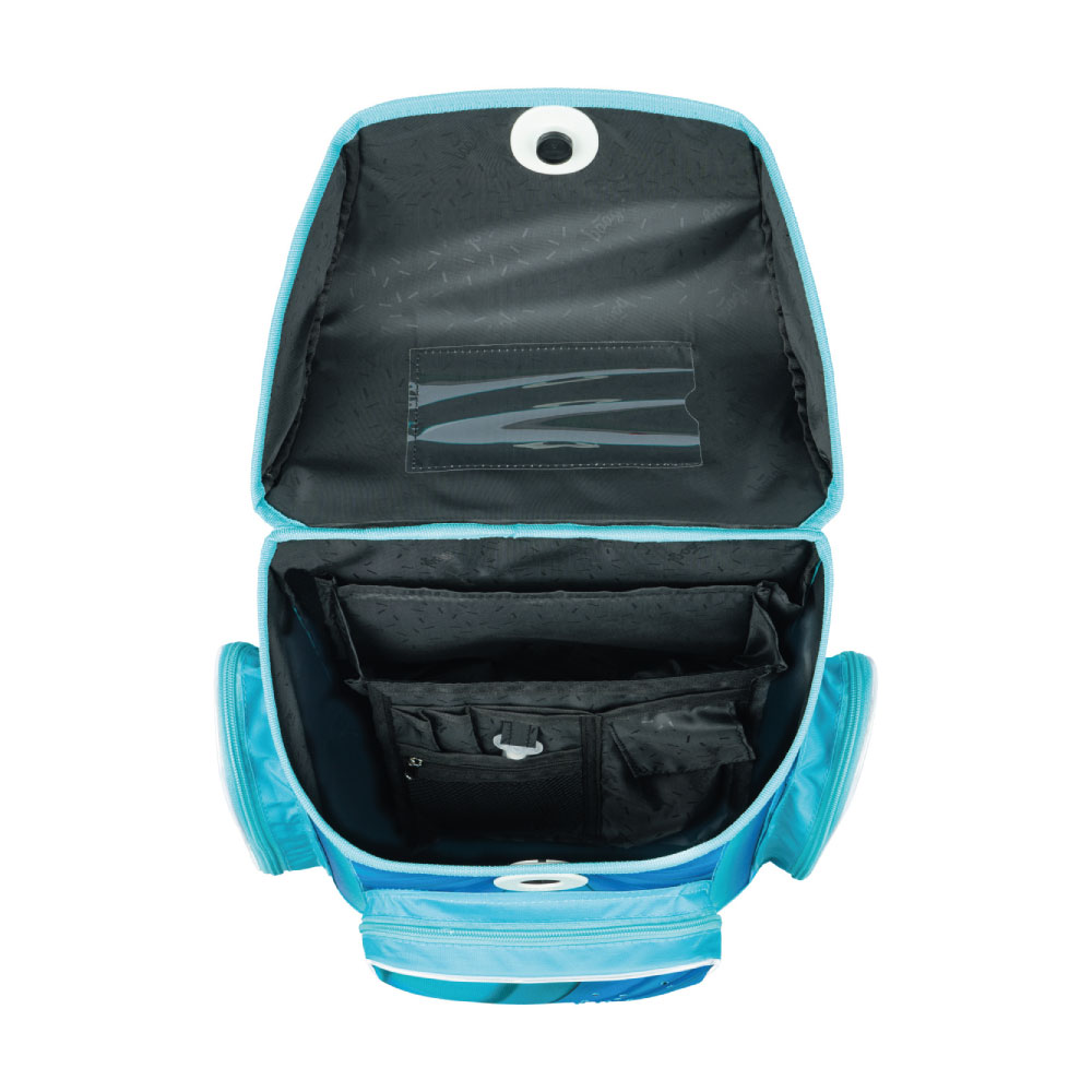 • Vnútri aktovky je priehľadné vrecko na rozvrh a vnútorný organizér umožňujúci rovnomerné rozloženie hmotnosti.