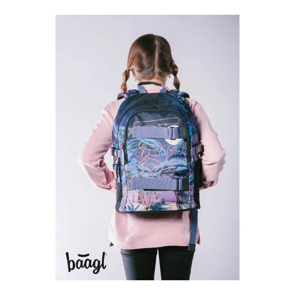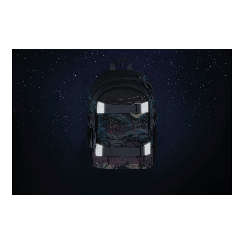 • Dievčenská školská súprava zložená z batohu Skate, kvalitného peračníka a vrecka na obuv s motívom nočnej krajiny, vhodný od 3. triedy