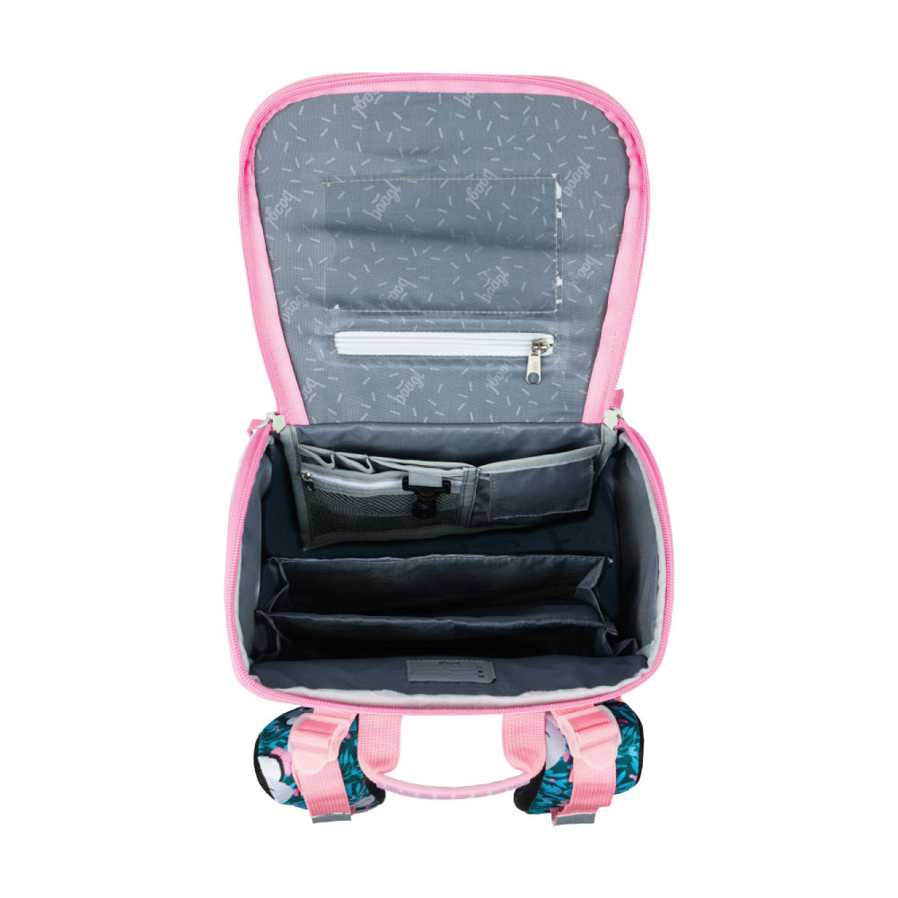 • Aktovka disponuje novým vyklápacím systémom otvárania na zips, vďaka ktorému sa školák ľahšie dostane k svojim pomôckam priamo z lavice a umožňuje lepší prehľad o obsahu školskej tašky.