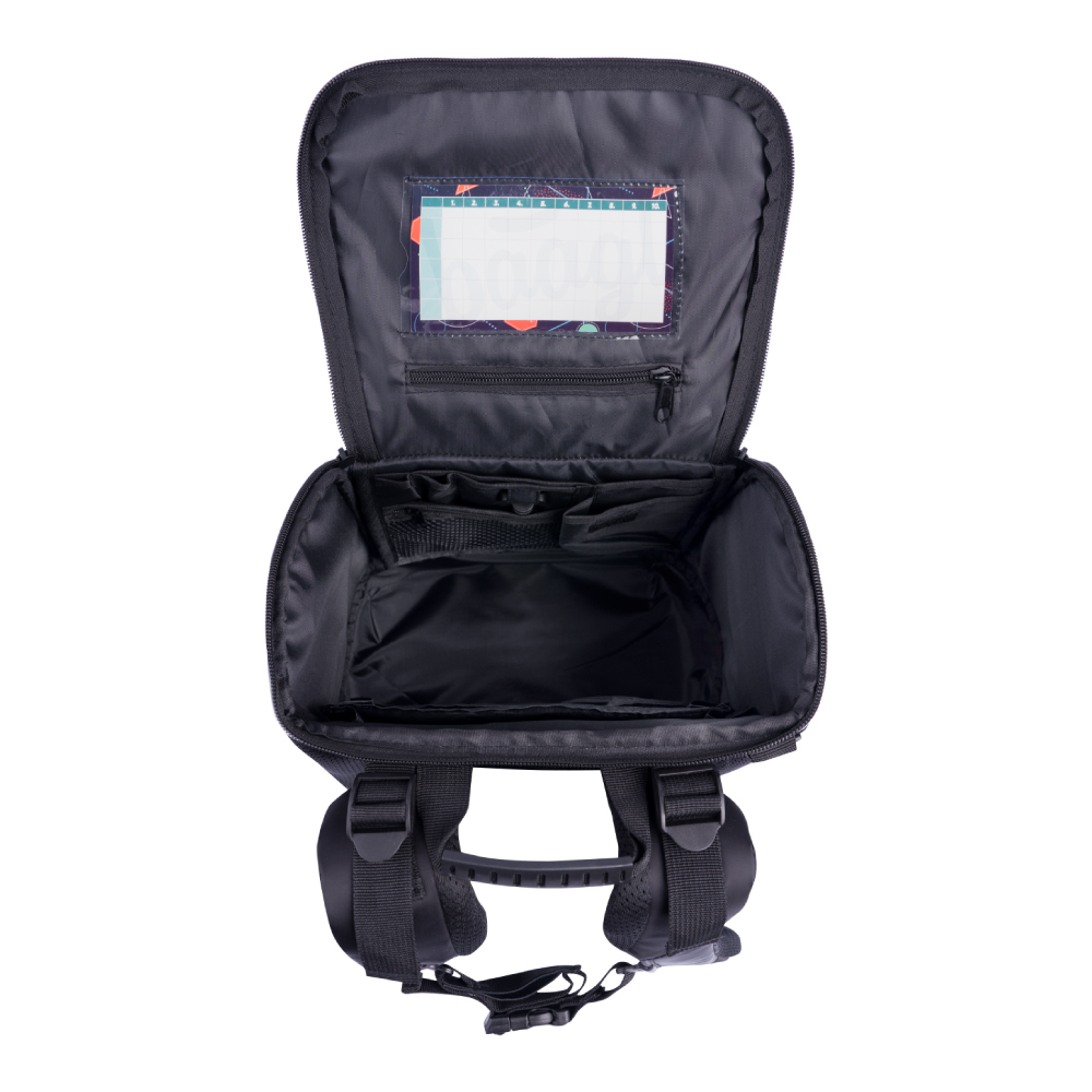 • Vnútri aktovky je priehľadná kapsa s rozvrhom a vnútorný organizér umožňujúci rovnomerné rozloženie hmotnosti doplnený gumičkou kvôli fixácii.