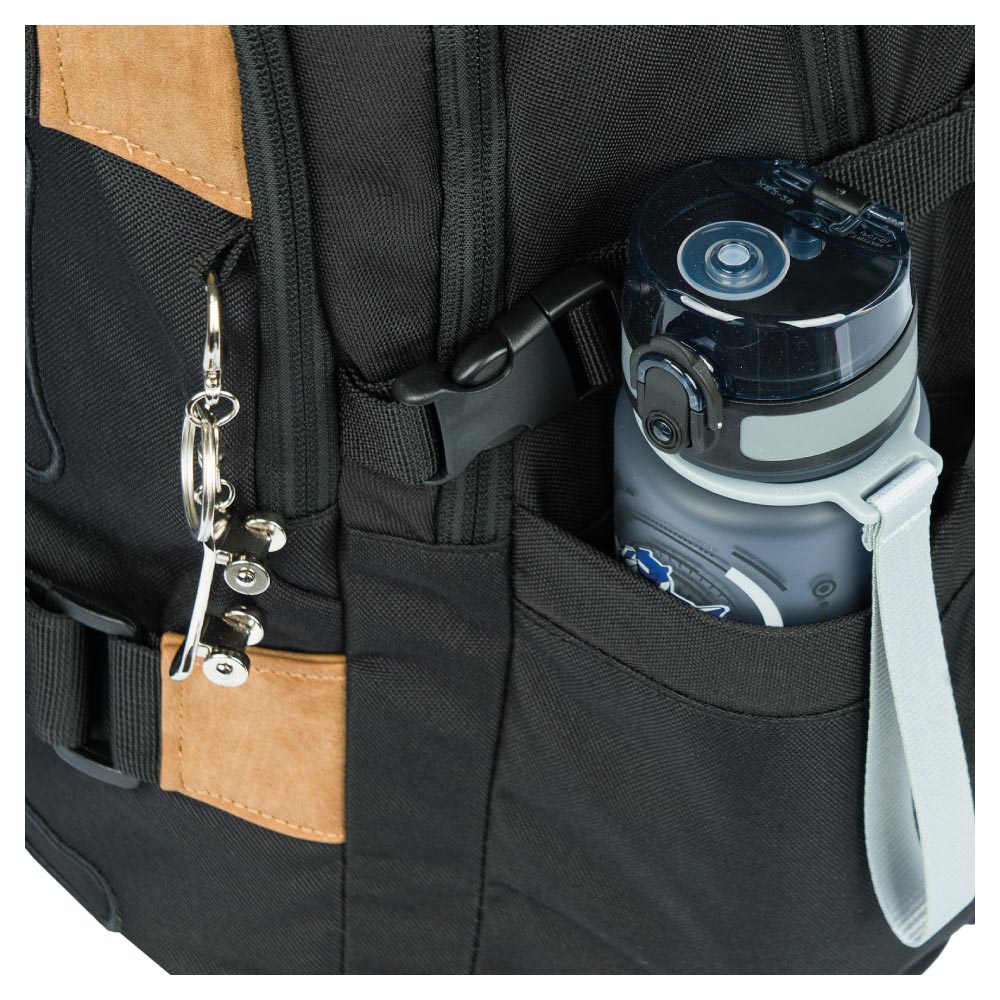 • Bočné vrecká z pevnej sieťoviny, ktoré sú vhodné pre jednu z našich fliaš na pitie.