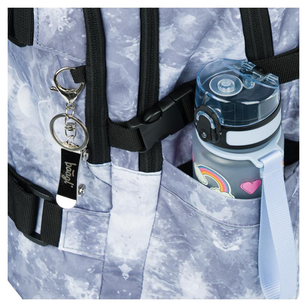 • Bočné vrecká z pevnej sieťoviny, ktoré sú vhodné pre jednu z našich fliaš na pitie.