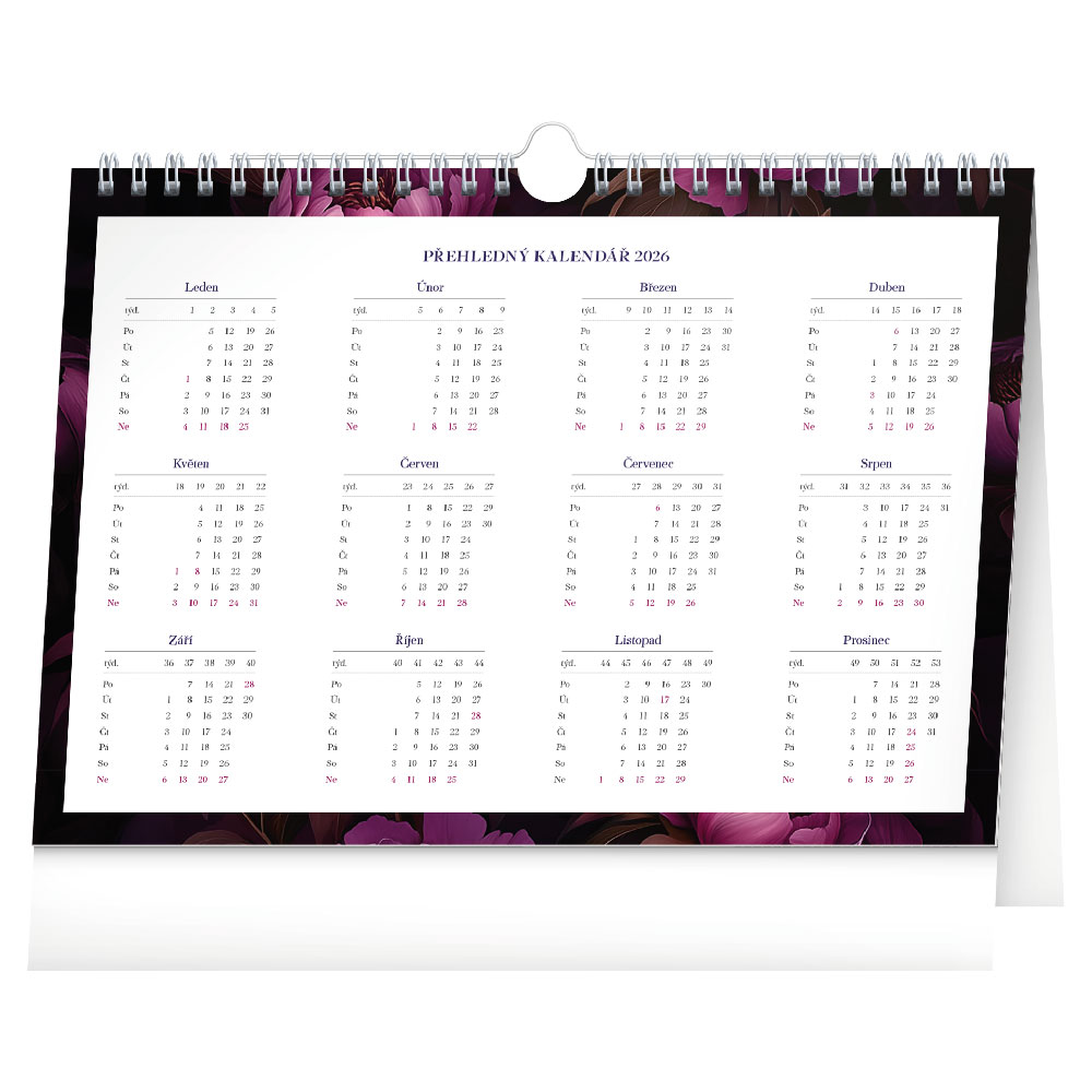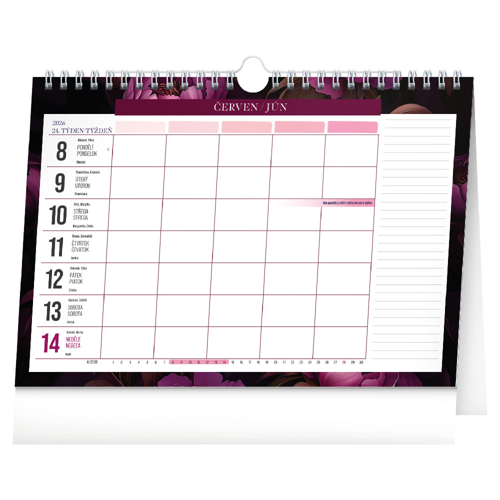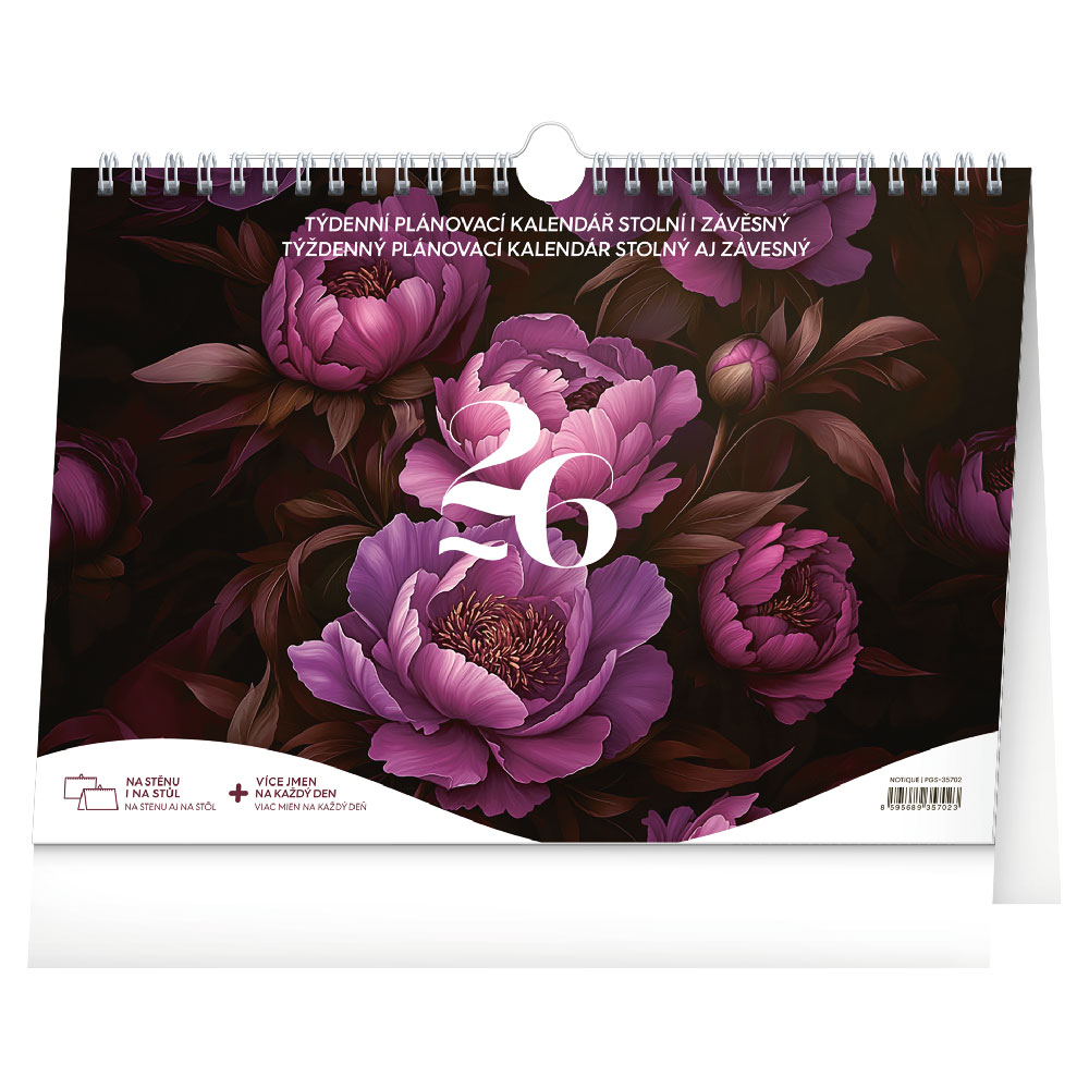 Stolový kalendár 2026 Fialové kvety - Týždenný plánovací