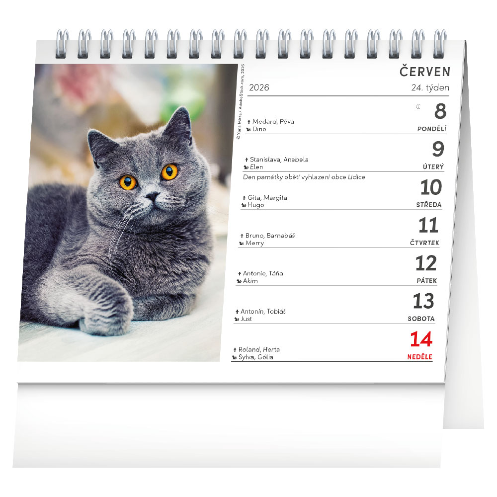 Stolový kalendár 2026 Mačky - s menami mačiek
