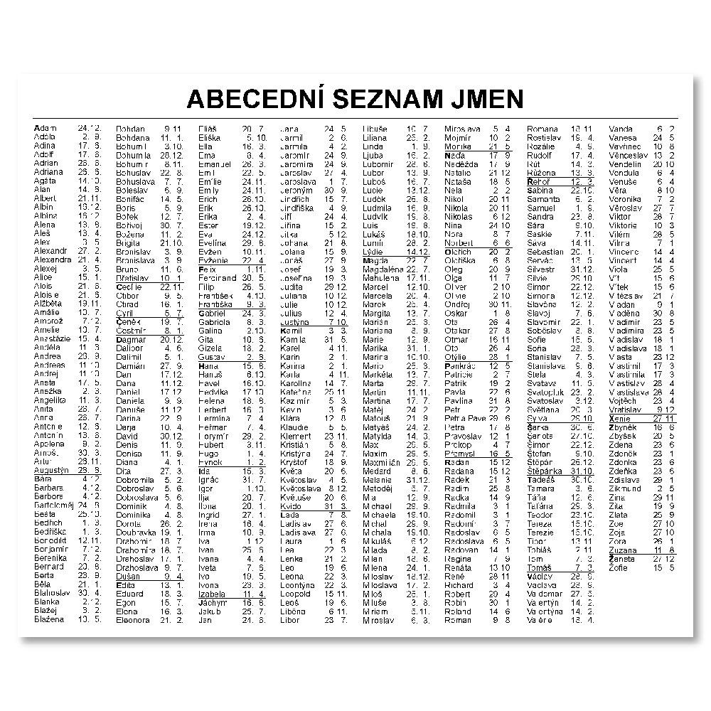Obsahuje plánovací kalendár a abecedný zoznam mien.