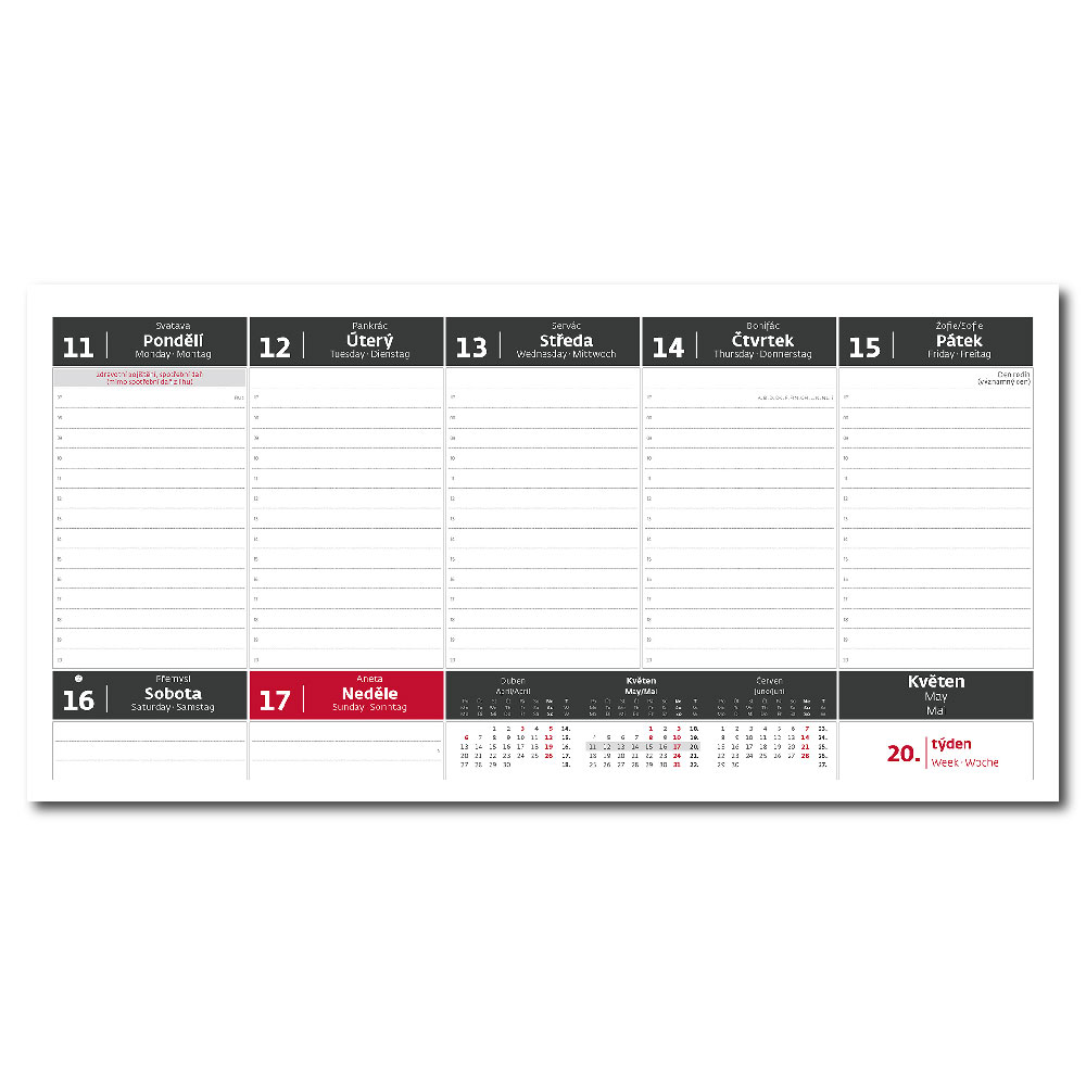 Obsahuje: dane a ročné obdobia, EÚ sviatky, 3-mesačný prehľad.