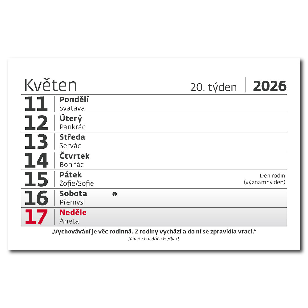 Stolový kalendár 2026 - Týždenný "S" s citátmi