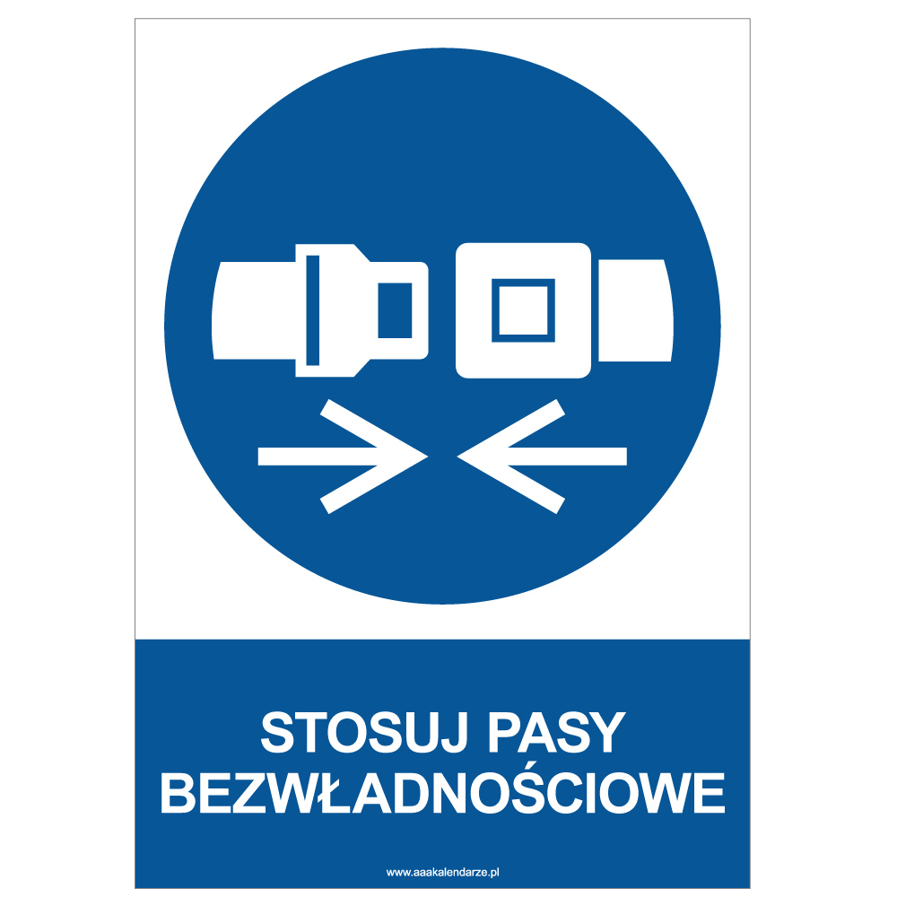 STOSUJ PASY BEZWŁADNOŚCIOWE - znak BHP, płyta PVC A4, 2 mm
