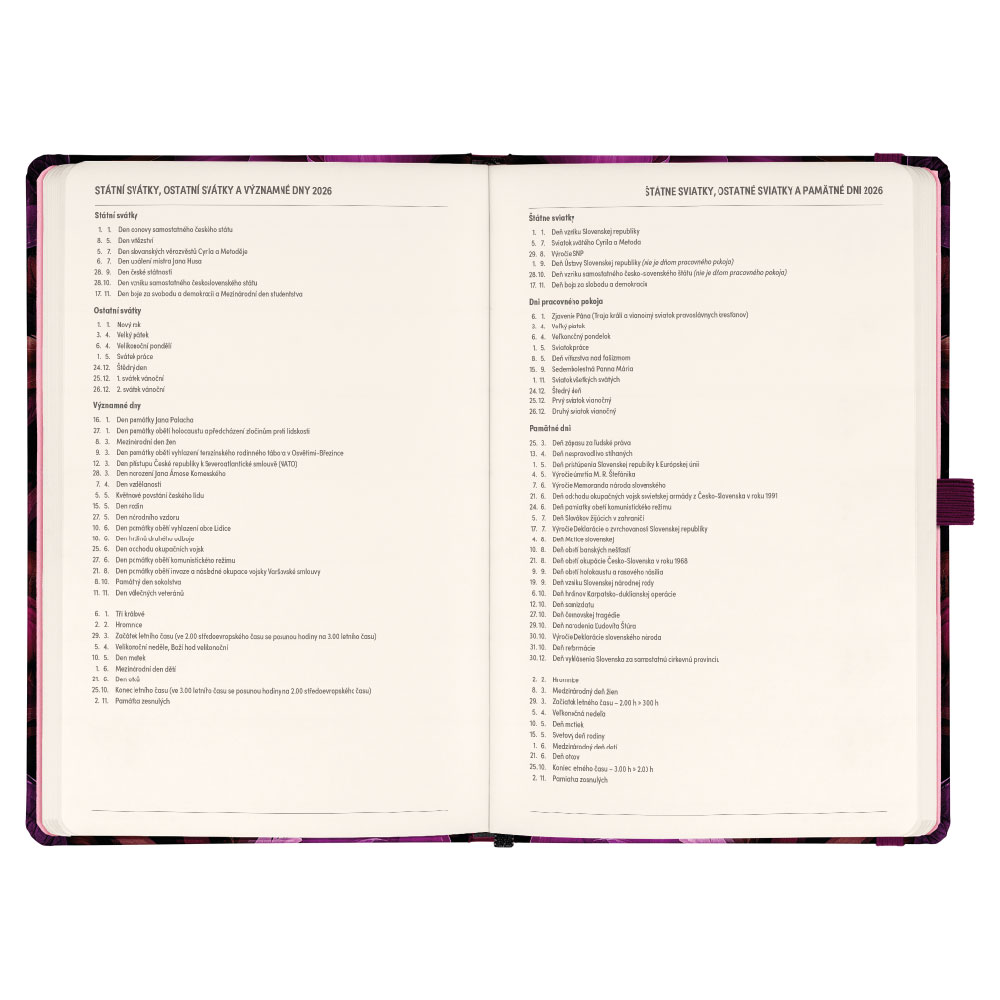 Súčasťou je záložka, pútko na ceruzku a vnútorné vrecko.