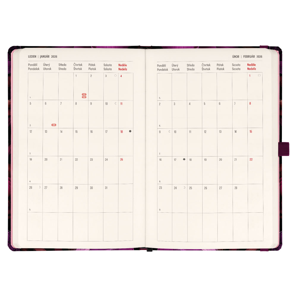 Štrnásťdňový diár/notes 2026 A5 Fialová kvety