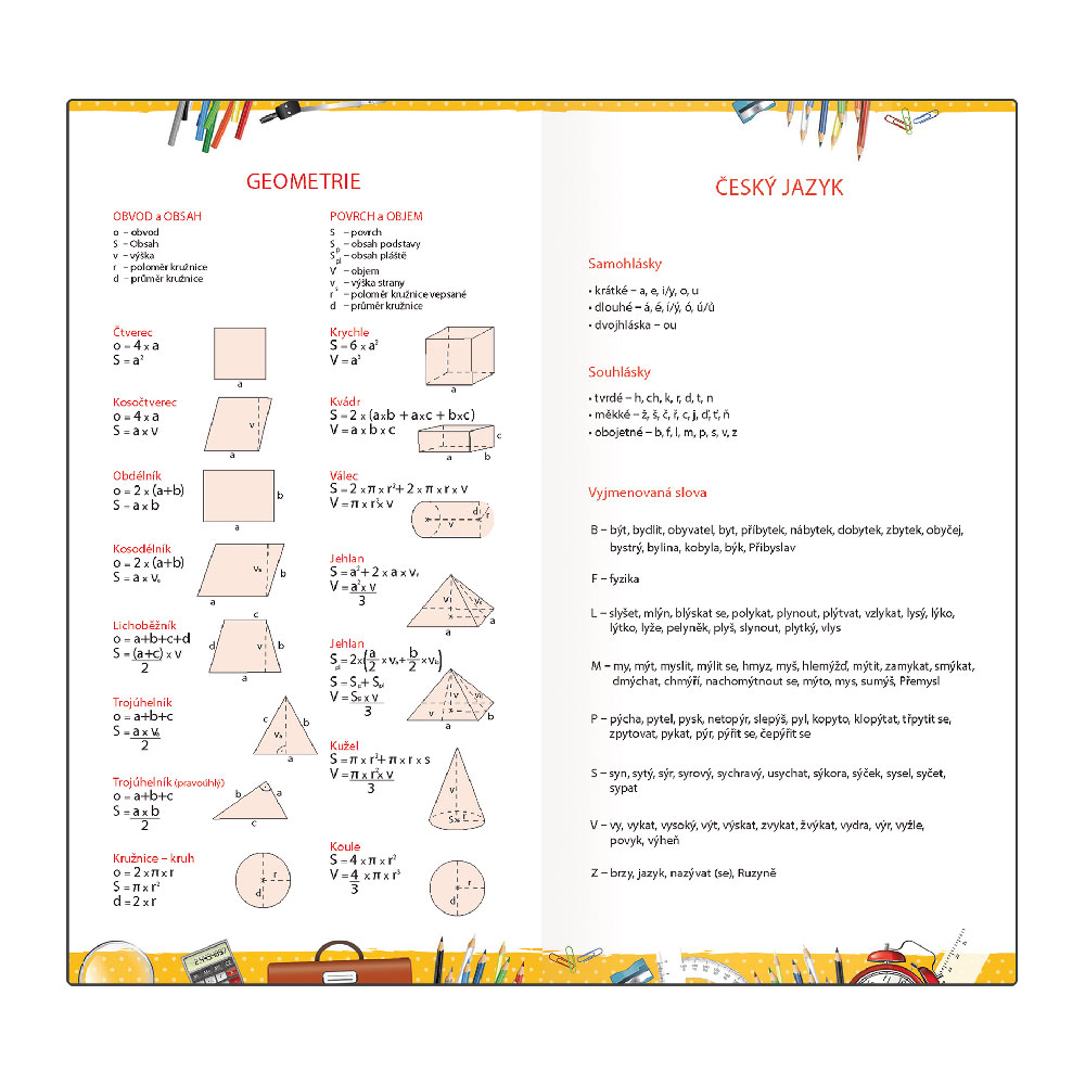 Obsahuje: rozvrh hodín, pravítko, adresár,