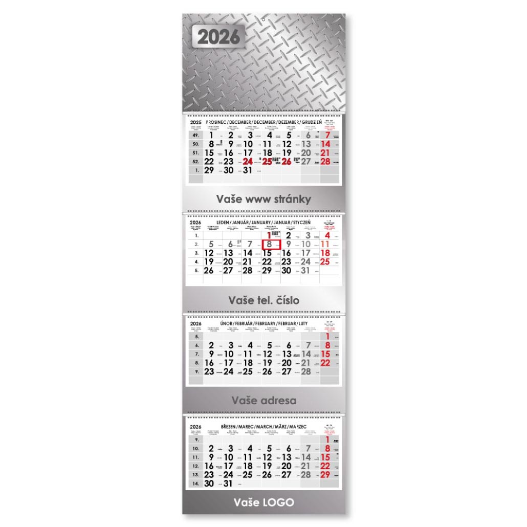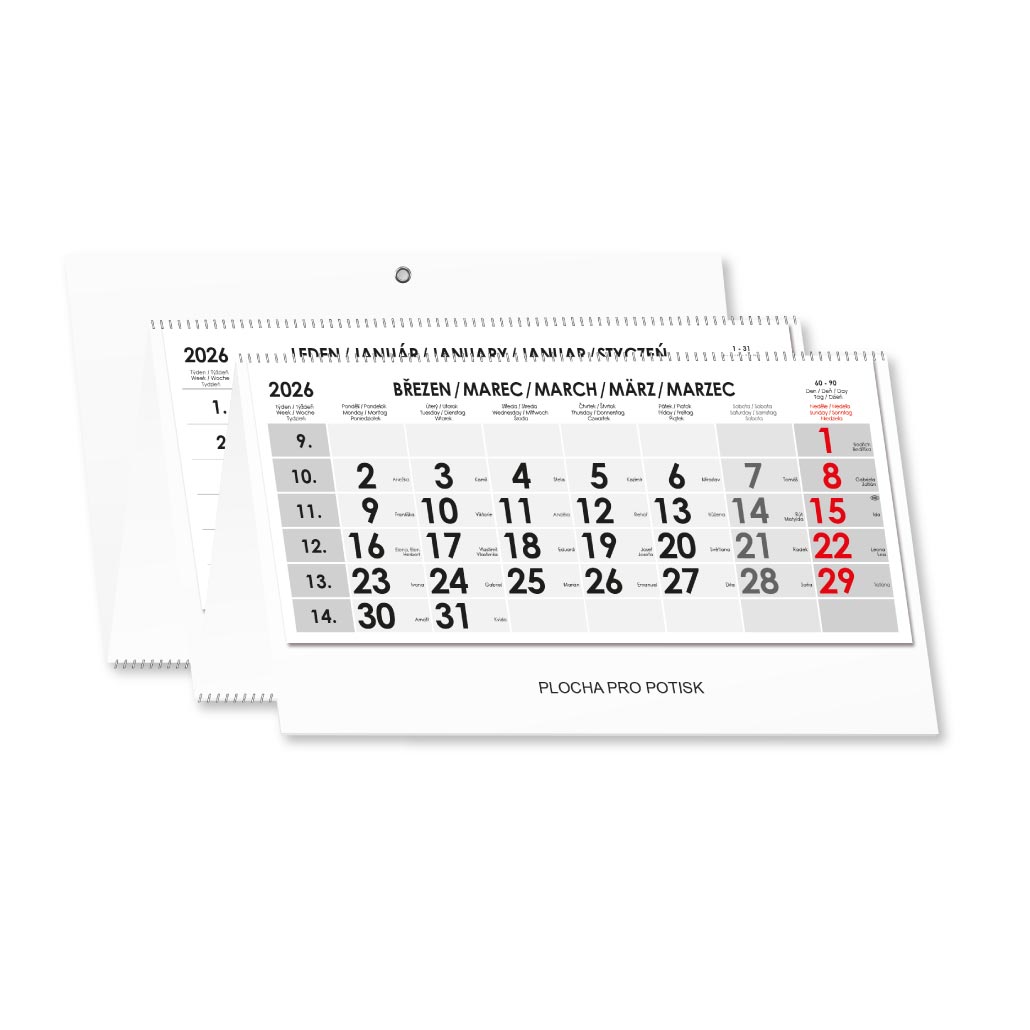 Štvormesačný kalendár Kvatro skládaný český so špirálou 2026 - sivý