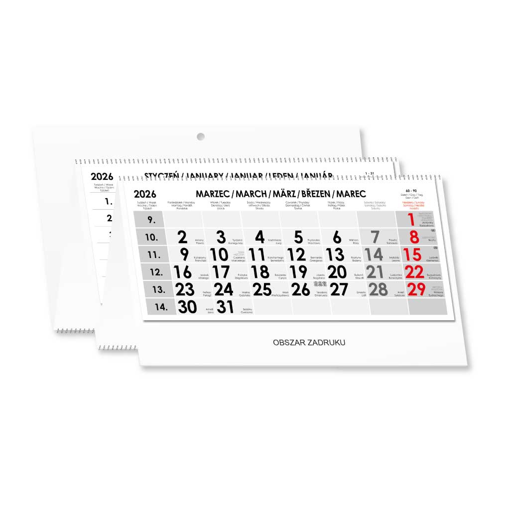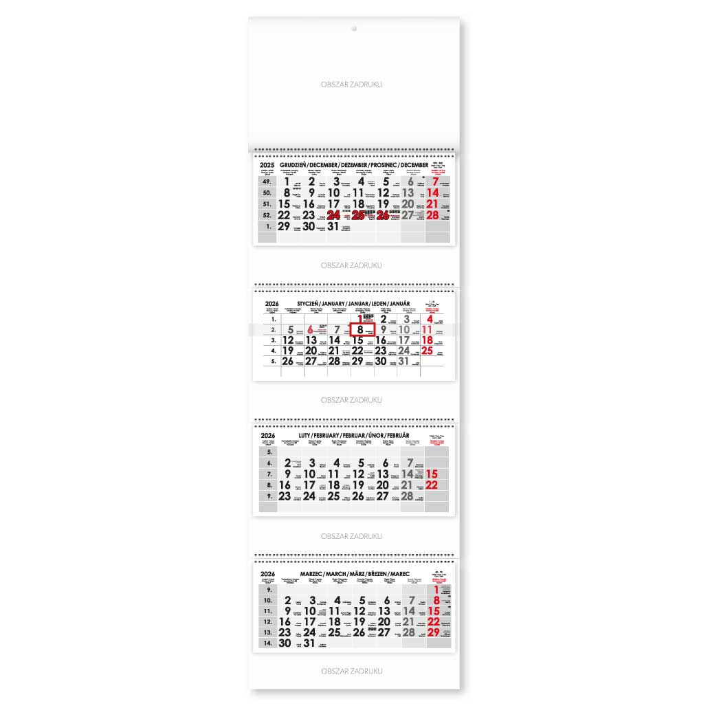 Štvormesačný kalendár Kvatro skládaný polský so špirálou 2026 - sivý