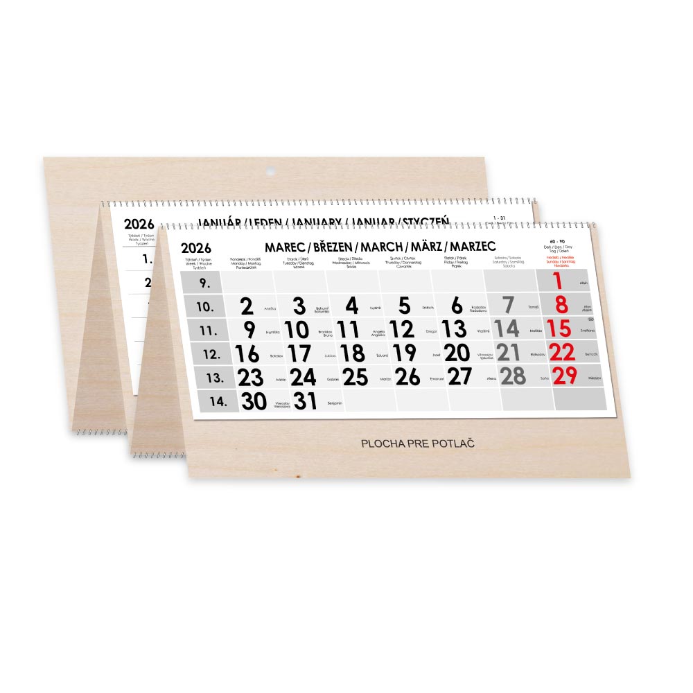 Štvormesačný kalendár Kvatro Wood skládaný slovenský so špirálou 2026 - sivý