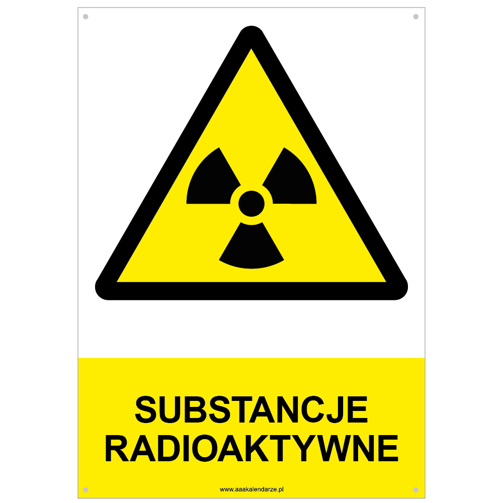 SUBSTANCJE RADIOAKTYWNE - znak BHP z dziurkami, płyta PVC A4, 2 mm