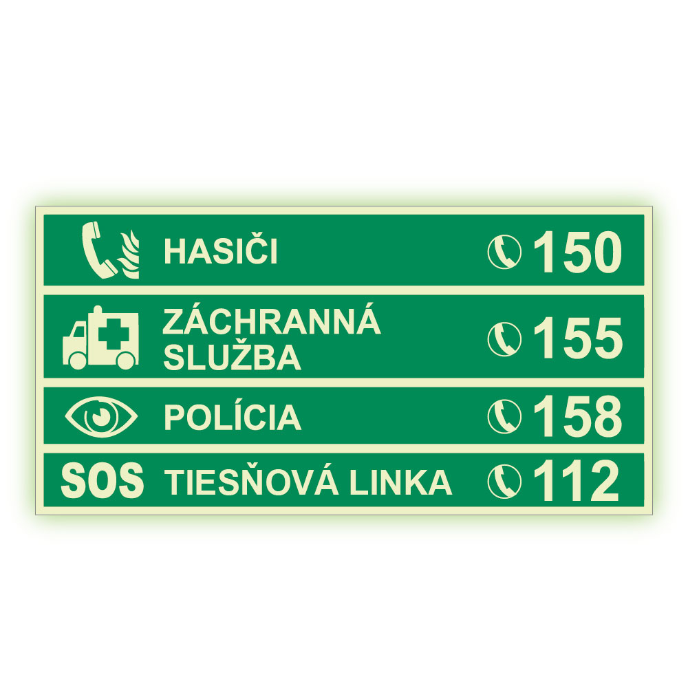 Tiesňové telefónne čísla - fotoluminiscenčná tabuľka, plast 1 mm 300x150 mm
