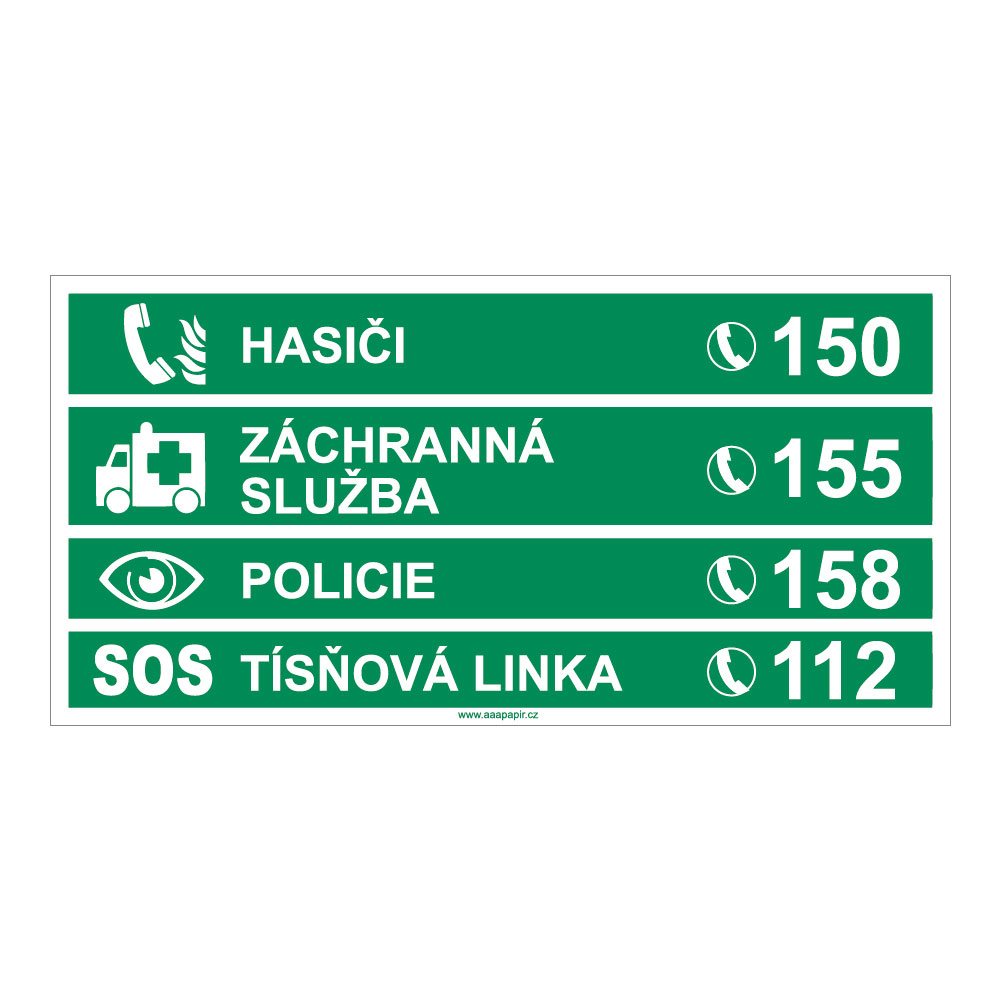 Tísňová telefonní čísla - bezpečnostní tabulka, plast 2 mm 200x100 mm