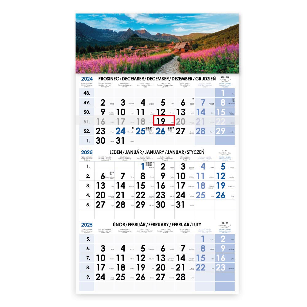 Tříměsíční kalendář Trio český 2025 Krajina - modrý