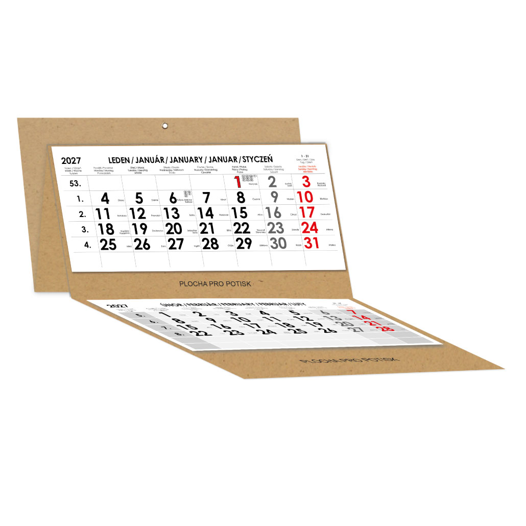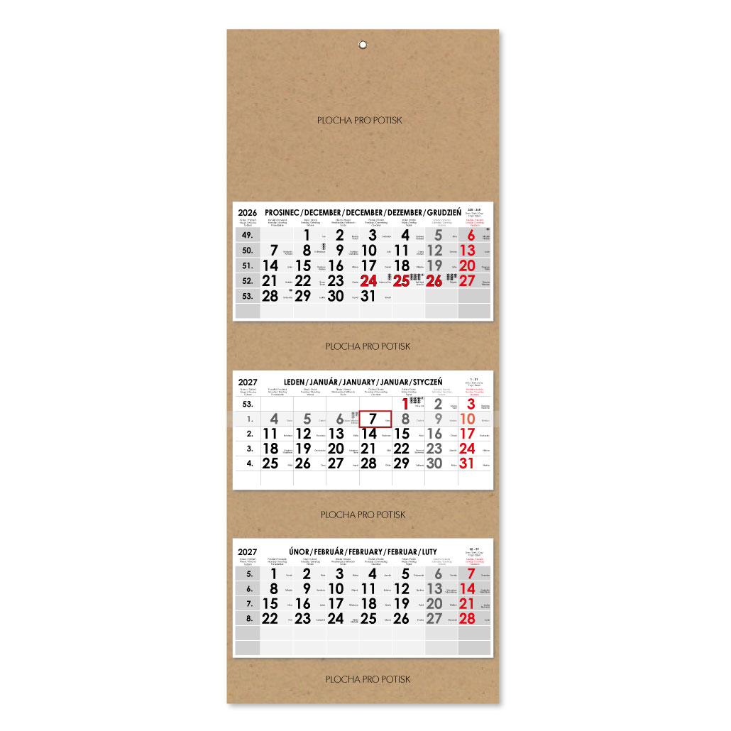 Trojmesačný kalendár Trio Kraft skládaný český 2027 - sivý
