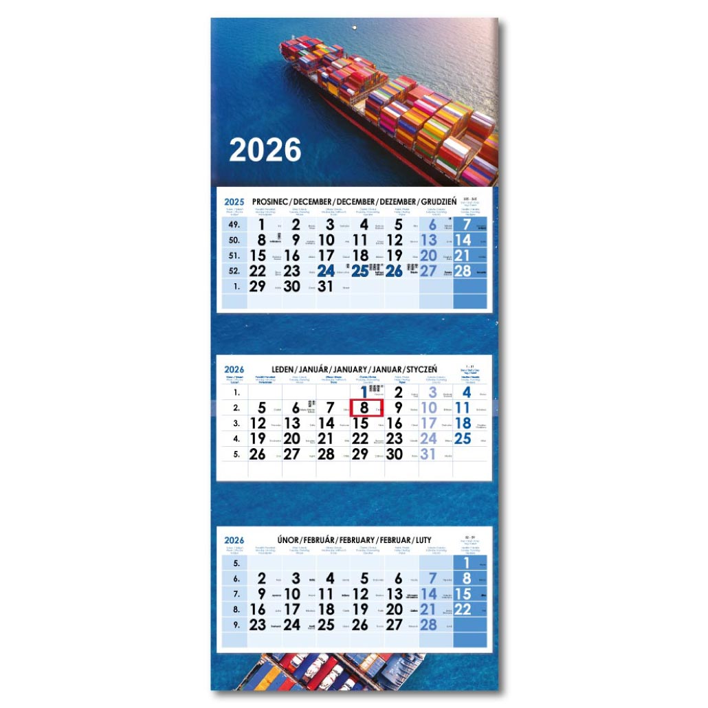 Trojmesačný kalendár Trio skládaný český 2026 - modrý