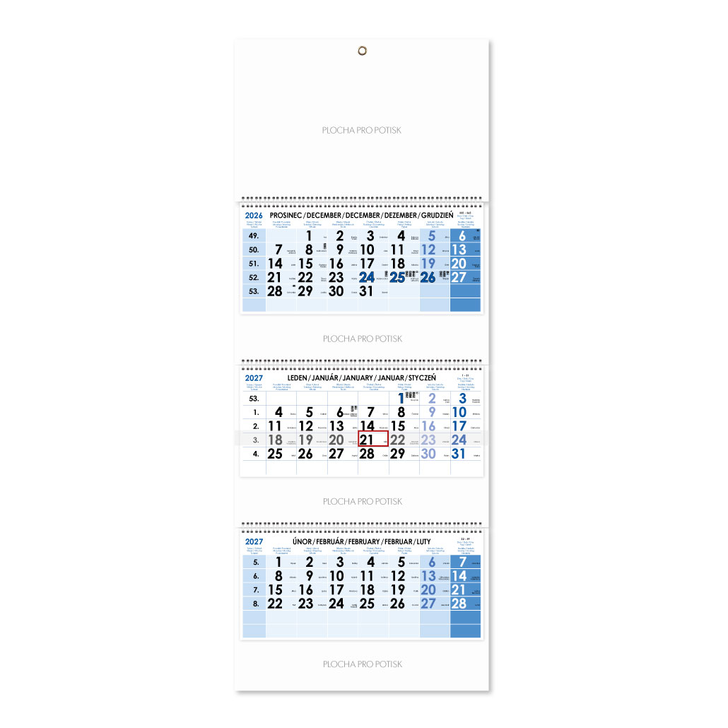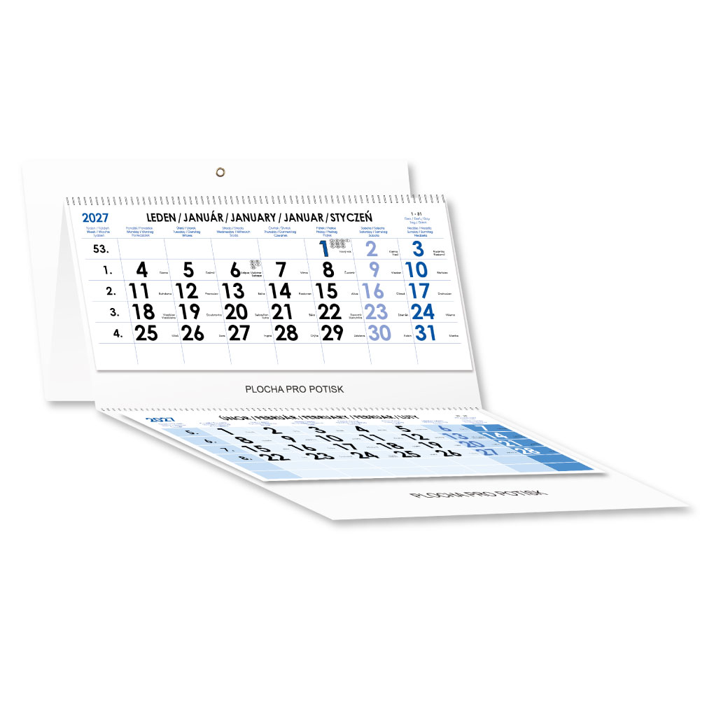 Trojmesačný kalendár Trio skládaný český so špirálou 2027 - modrý