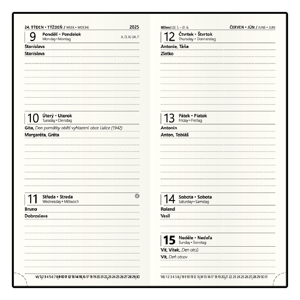 ročný plánovací kalendár CZ, miesto na poznámky.