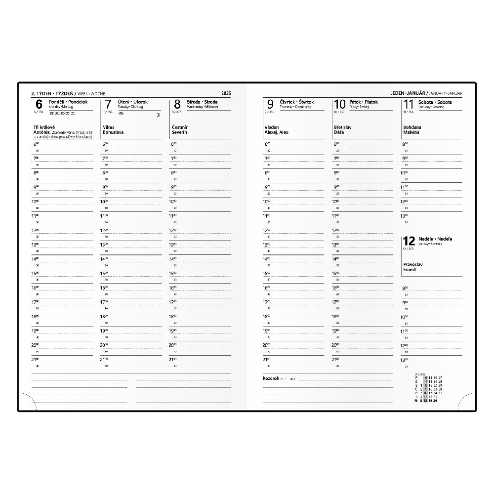 ročný plánovací kalendár CZ/SK, miesto na poznámky.