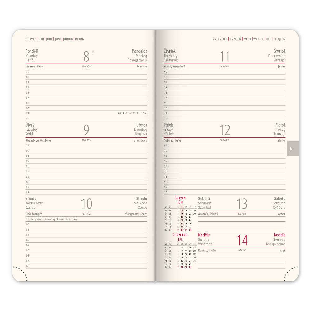 Kalendárium: 6-jazyčné týždenné (CZ, SK, EN, DE, HU, RU)